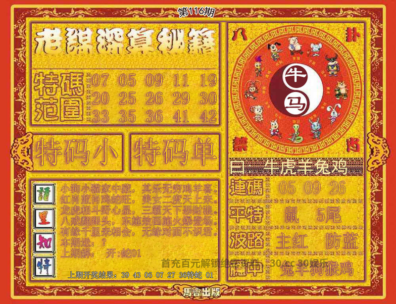 120期:密门仙机/心水特码信/黄大仙天书/波色生肖诗/生肖歇后语