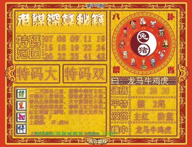 120期:特码预测版/六合独家料/小财神送码/三字联/曾道人玄机字